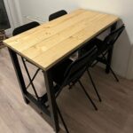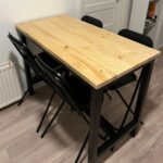 De standaardafmetingen van deze bartafel zijn 110 cm hoog, 60 cm breed en 120 cm lang – ideaal voor 2 tot 4 barkrukken. Heb je andere wensen qua formaat of bladtype? Geen probleem. Omdat we alles zelf maken, kunnen we jouw bartafel volledig op maat leveren, afgestemd op jouw ruimte én gebruik.