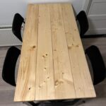 Standaard wordt de bartafel geleverd met een blad van steigerhout, afgewerkt met een blanke lak die het hout beschermt tegen vocht, vlekken en dagelijks gebruik. Liever een ander blad? Ook dat is mogelijk – kies bijvoorbeeld voor een blad van Douglas of eikenhout. Zo creëren we samen een tafel die helemaal bij jouw stijl en wensen past.