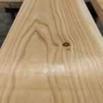 Het tafelblad bestaat standaard uit vier robuuste Douglas planken van elk 5 cm dik en 25 cm breed. De planken zijn behandeld met een blanke lak om ze te beschermen tegen vocht, eten en drinken. De randen zijn afgewerkt met een kantenfrees, wat zorgt voor een zachte bolling en een comfortabele uitstraling. Liever een ander type hout of een aansluitend blad? Geen probleem – we maken het volledig naar wens.