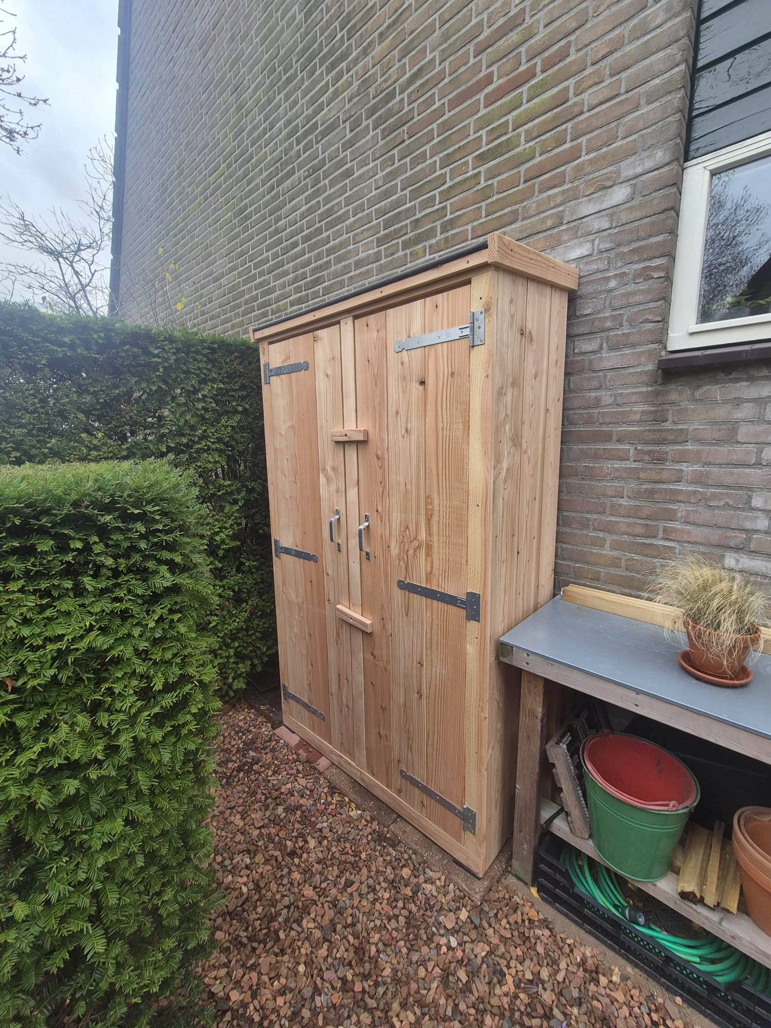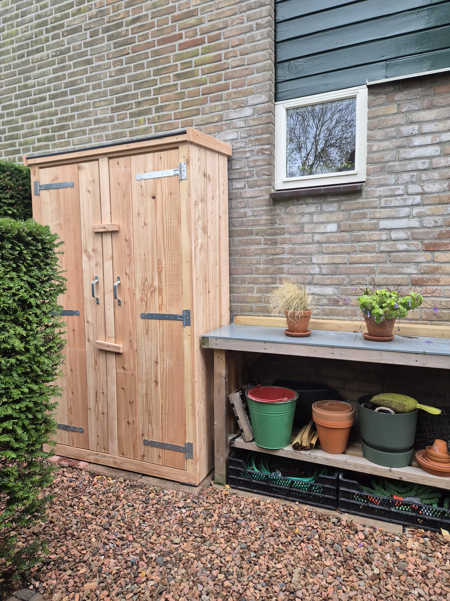 Of je nu op zoek bent naar opbergruimte voor kleine tuinspulletjes of langer gereedschap, de Tuinkast Baarn biedt de perfecte oplossing. Met een handige verdeling kun je je gereedschap en accessoires georganiseerd houden, waardoor je snel kunt vinden wat je nodig hebt. Geen gedoe meer met rondslingerende spullen of urenlang zoeken naar dat ene stuk gereedschap.