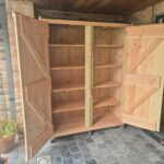 De kast is volledig vervaardigd uit hoogwaardig Douglas hout, bekend om zijn lange levensduur en natuurlijke uitstraling. Voor een extra luxe afwerking is gebruikgemaakt van zwart hang- en sluitwerk, wat zorgt voor een moderne en robuuste look.