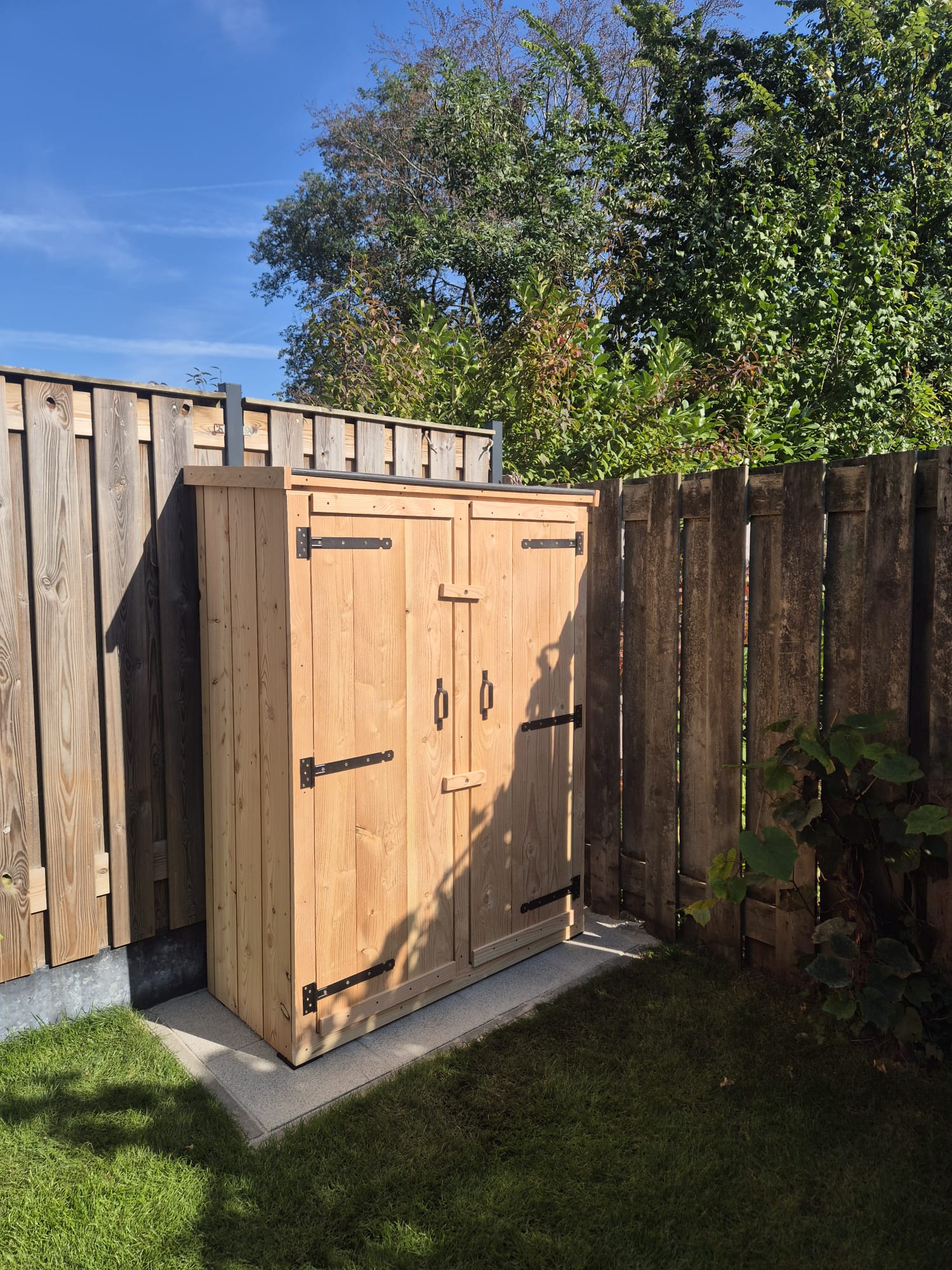 Maak deze kast verrijdbaar door 4 stevige wielen toe te voegen waarvan twee met rem. Zo verplaats jij de kast door jouw tuin en zet je de kast op elk moment op de gewenste plek! Tegen een meerprijs van 50,- kan deze verrijdbaar gemaakt worden.