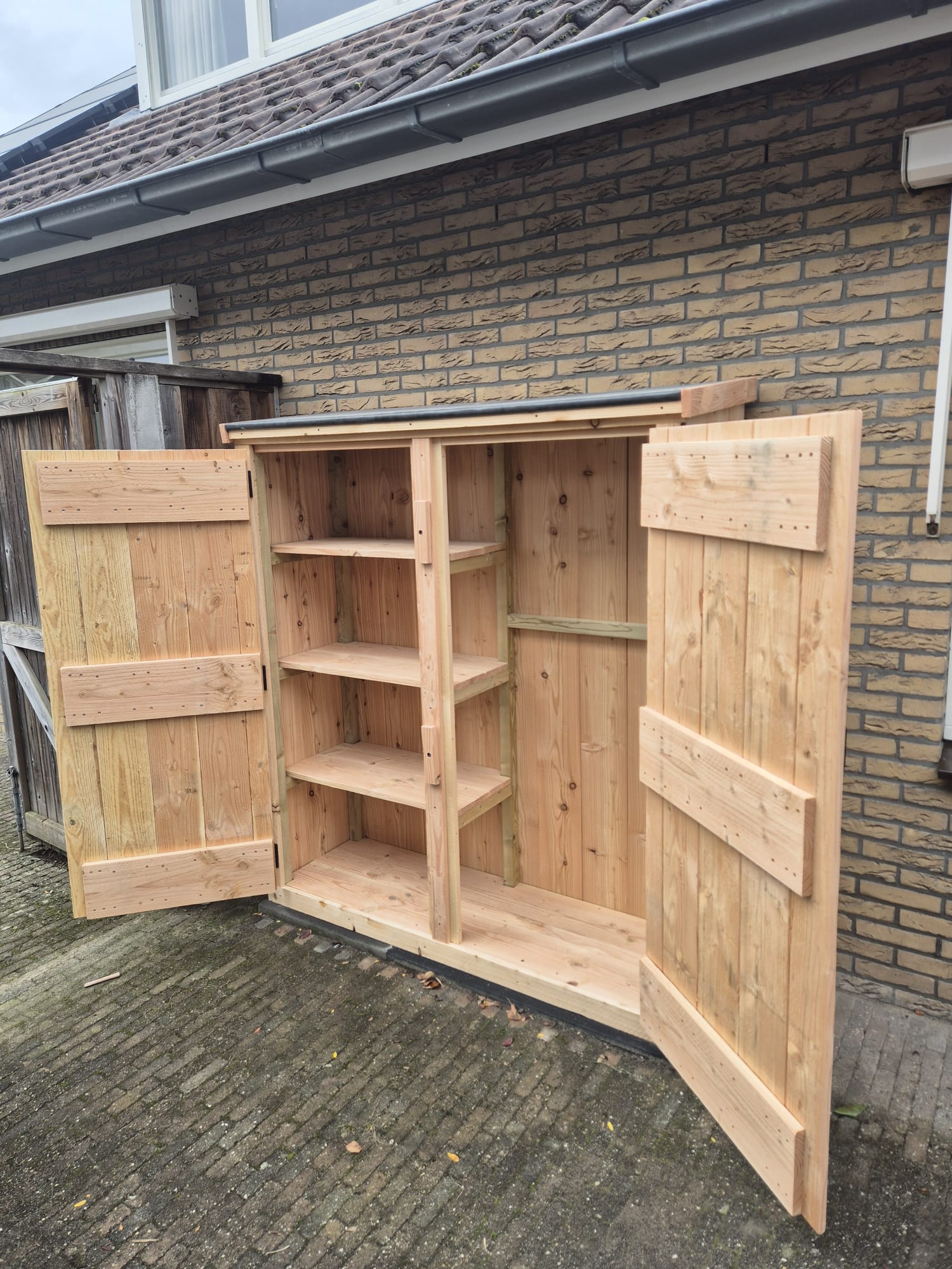 De Tuinkast “Zwolle” XXL is ontworpen met jouw gemak in gedachten. Daarom bevat deze kast drie handige legplanken (vier ruimtes). Deze legplanken bieden extra opslagruimte voor kleinere tuinaccessoires, potten, gereedschap en meer. Met de legplanken kun je de kast efficiënt indelen en al je spullen georganiseerd houden. Het is de perfecte oplossing om je tuin netjes en overzichtelijk te houden. De open ruimte aan e rechterkant biedt ruimte voor grotere tuinspullen!