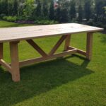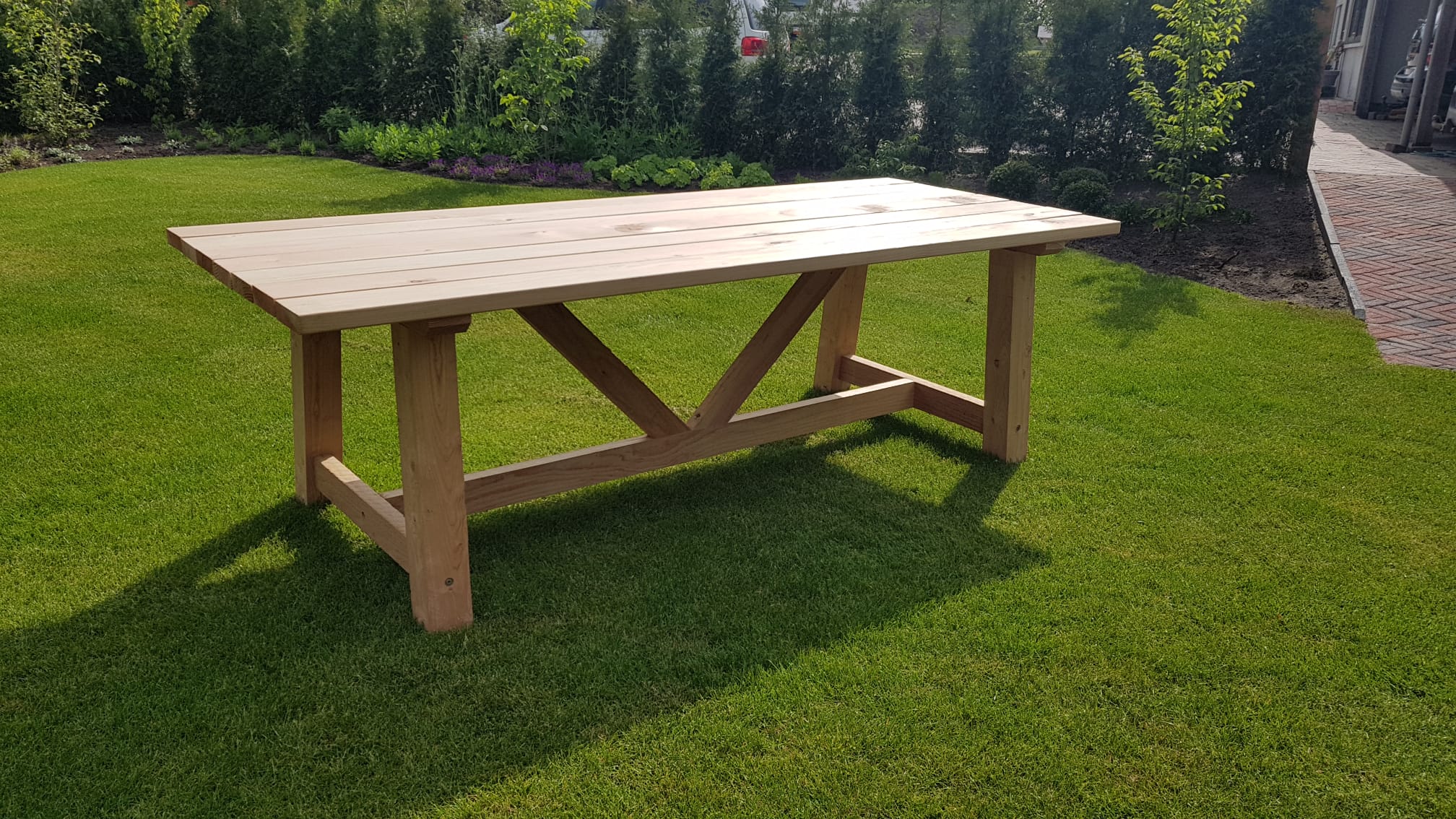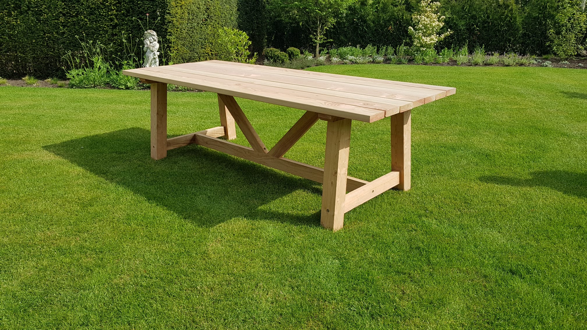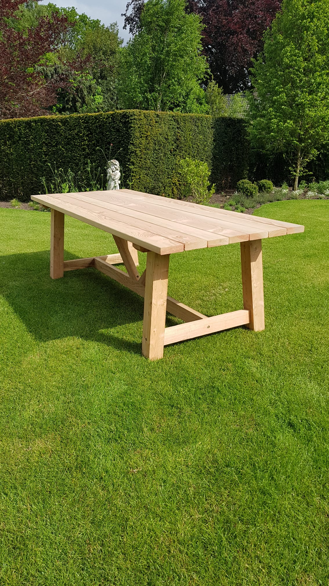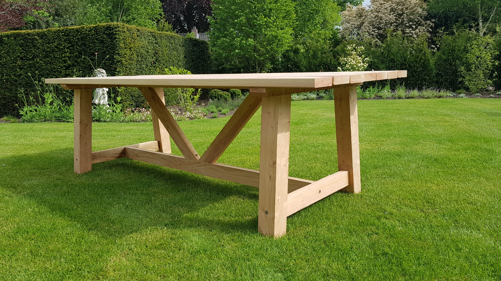 Douglas hout staat bekend om zijn duurzaamheid en warme uitstraling. De tafel kan onbehandeld buiten staan en vergrijst op natuurlijke wijze of kan behandeld worden voor kleurbehoud.