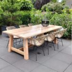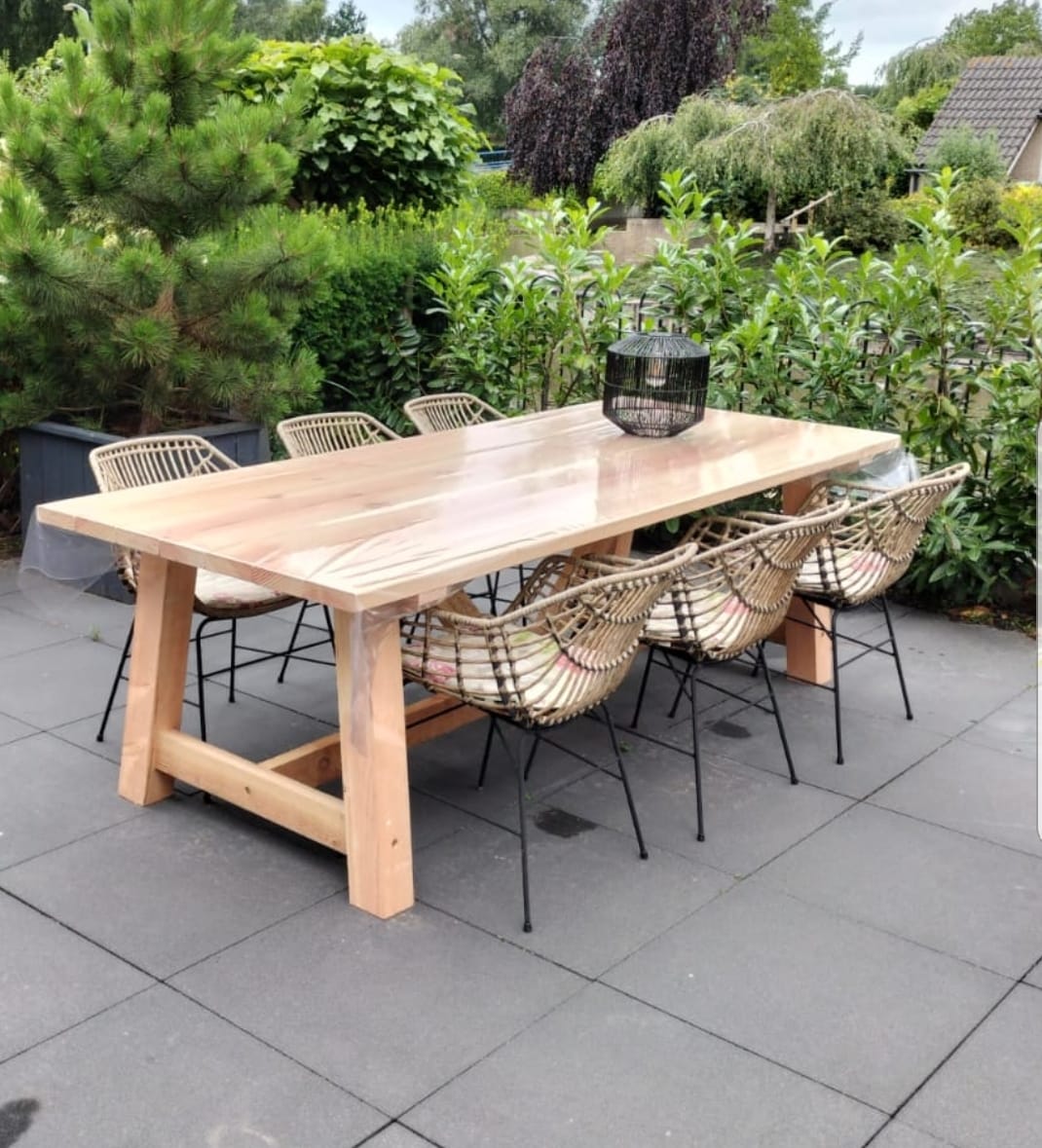 De tuintafel “Veluwe” is beschikbaar in verschillende breedtes en lengtes, zodat er altijd een formaat is dat perfect aansluit bij jouw tuin of terras. De standaard hoogte van de tafel is 76 cm.