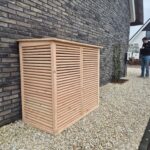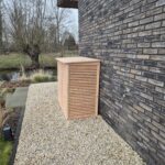 Deze stijlvolle warmtepomp ombouw van Douglas hout is voorzien van lamellen aan drie zijden en een open achterkant voor eenvoudige plaatsing. Niet waterdicht, maar wél een mooie oplossing om je warmtepomp netjes weg te werken.