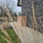 De ombouw is aan drie zijden voorzien van verticale lamellen, waardoor de warmtepomp voldoende ventilatie krijgt en toch uit het zicht staat. De achterkant is open, zodat je de ombouw eenvoudig over de warmtepomp heen kunt schuiven. Er is een lichte afloop naar voren voor een betere afwatering. Hoewel de ombouw niet waterdicht is, is dat ook niet nodig – warmtepompen zijn bestand tegen regen. Deze ombouw is juist bedoeld om een functioneel apparaat op een mooie manier te integreren in je tuin, zonder afbreuk te doen aan het aanzicht van je buitenruimte.